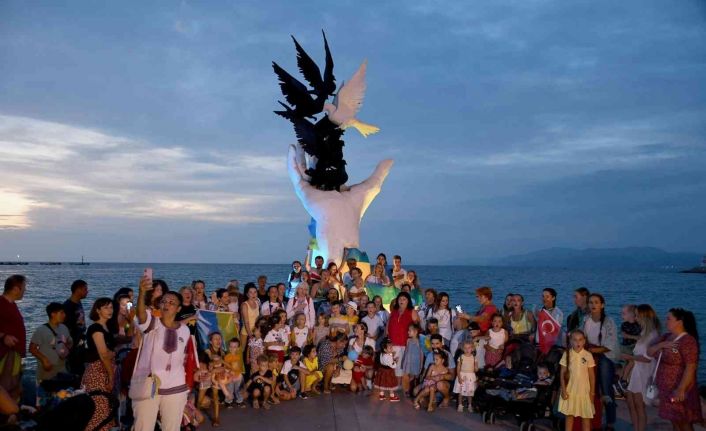 Rusya’nın Ukrayna’ya karşı altı ay önce başlatmış olduğu askeri harekat nedeniyle Kuşadası’na sığınan kadın ve çocuklar Ukrayna’nın bağımsızlık günü için bir araya geldi. Toplam 55 ülkeden yaklaşık beş bin Ukraynalının bir internet uygulaması üzerinden bağlantı kurması ile savaş mağdurları hep bir ağızdan milli marşlarını söyleyerek bir rekora imza attı.