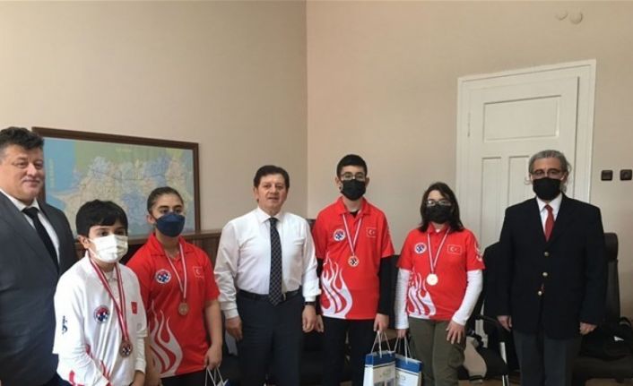 Türkiye Küçükler ve Yıldızlar Satranç Şampiyonası’nda 15 yaş genel kategoride Çağan Erdem Bektaş Türkiye üçüncüsü, 12 yaş Kızlar kategorisinde Nehir Yurt Türkiye sekizincisi, 12 yaş Kızlar kategorisinde Meleknaz Öztatar Türkiye dokuzuncusu ve 10 yaş genel kategoride Mehmet Efe Akın Türkiye onuncusu olarak bu sporcular milli takım havuzuna girmeyi hak kazandı. Aydın Valiliği’nde gerçekleştirilen ziyarete Aydın Gençlik ve Spor İl Müdürü Cenap Fillikçioğlu, Aydın Satranç İl Temsilcisi Kubilay Enginsu, sporcular, sporcuların aileleri ve antrenörleri katıldı. Satranç yıldızlarını ağırlamaktan dolayı duyduğu memnuniyeti dile getirerek sözlerine başlayan Vali Yardımcısı Dr. Mehmet Gödekmerdan, “Gençlerimizin bu başarıları ile iftihar ediyorum. Ne mutlu ki aileleriniz sizi bu güzel spora yönlendirmiş. Kıymetli ebeveynler inanıyorum ki gelecekte çocuklarınız, iyi bir satranç oyuncusu olmanın verdiği özgüvenle tüm işlerinde çok başarılı olacaklar. Çocuklarınızı bu güzel spora yönlendirdiğiniz için sizleri tebrik ediyorum. Gençlik ve Spor İl Müdürümüze ve emeği geçen herkese teşekkürlerimi sunuyorum” dedi.