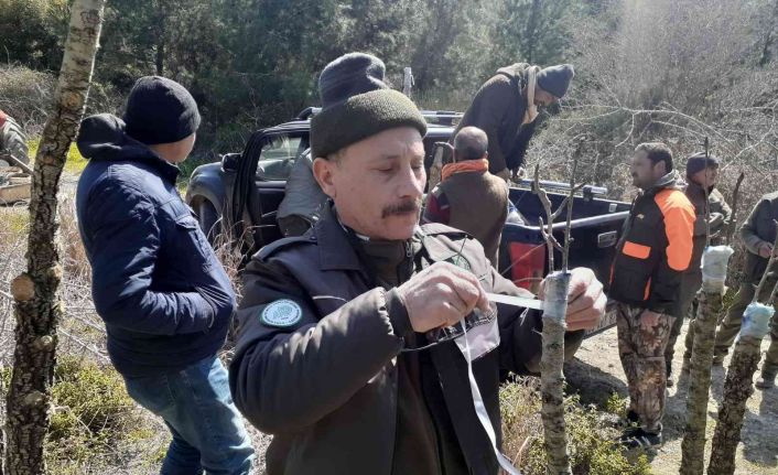 Aydın’ın Kuşadası ilçesinde yabani hayvanların yem sıkıntısı yaşaması için verimi olmayan yabani meyve ağaçlarında aşılama çalışması yapıldı.