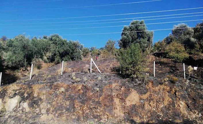 Aydın’ın Koçarlı ilçesinde meydana gelen arazi yangınında yaklaşık 100 dönümlük zeytin ve çam ağaçlarının bulunduğu alan zarar gördü.