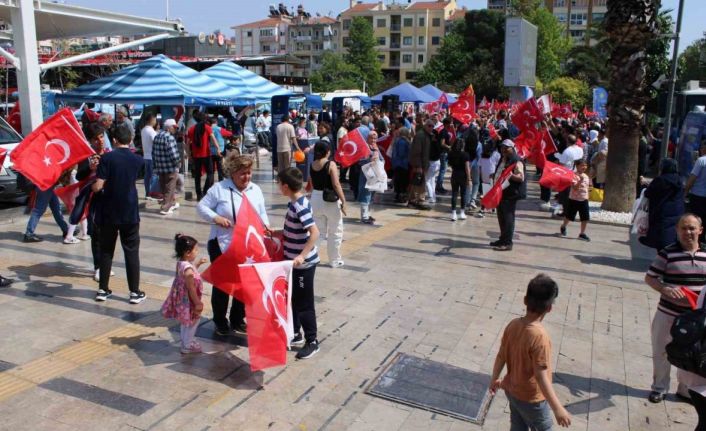 Aydın’da 14 Mayıs’taki genel seçimler için siyasi partiler seçim çalışmalarına aralıksız devam ediyor. Ülke genelinde olduğu gibi Aydın’da da aynı meydanda çadır kurup, stant açan partilerin çalışmaları renkli görüntüler oluştururken, seçim saatlerine saatler kala tüm siyasi partiler Atatürk Kent Meydanı’nda seçim çalışmalarına hız kazandırdı. Saat 18.00 itibariyle başlayacak olan seçim yasakların öncesinde partilerini desteklemeye gelen vatandaşlar da meydanda yoğunluk oluşturdu. Siyasi partilerinin stantlarında bulunan vatandaşlar da ellerine aldıkları tanıtım broşürleri ile seçim çalışmalarında yer alarak partilerinin vaatlerini bölgeden geçen vatandaşlara anlatıyor.