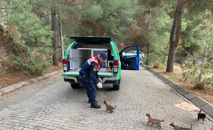 Aydın’ın Efeler ilçesinde ormanlık alanda terk edilmiş ve aç halde bulunan yavru köpekleri jandarma ekipleri kurtardı.