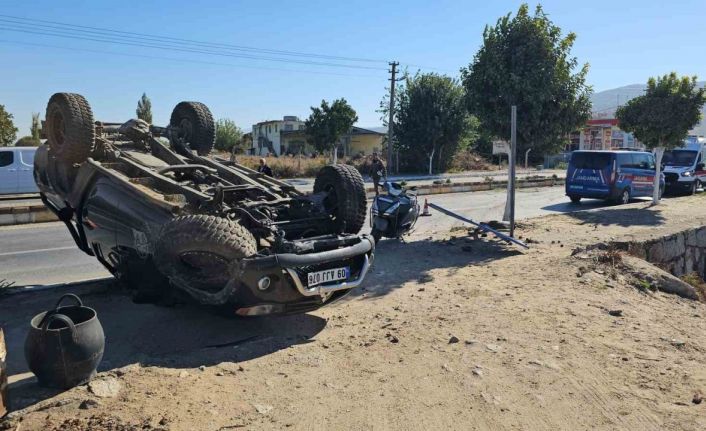 Aydın’ın Yenipazar ilçesinde refüje çarpan kamyonetin takla atması sonucu 2 kişi yaralandı.