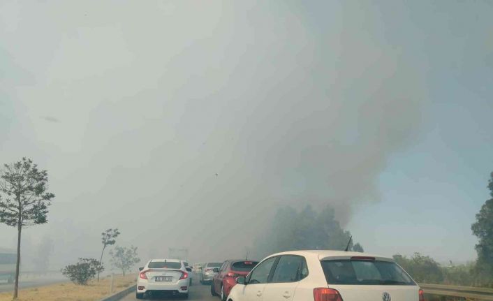 Söke-Bodrum yolu üzerinde çıkan yangın dolayısıyla ortalığı kaplayan yoğun duman görüş mesafesini yok ederken, sürücüler zor anlar yaşadı.