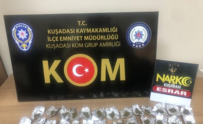 Kuşadası’nda polisin dur ihtarına uymayan bir şüphelinin yola attığı poşetin içinden uyuşturucu madde çıktı. Gözaltına alınan şüpheli, çıkarıldığı mahkeme tarafından tutuklandı.