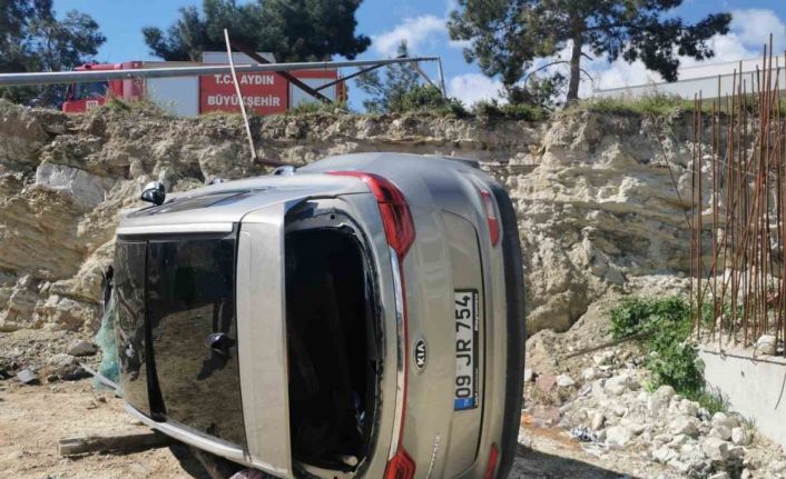 Aydın’ın Kuşadası ilçesinde sürücüsünün direksiyon hakimiyetini kaybettiği araç inşaat alanına devrilirken, kazada araç sürücüsü F.B. yaralandı.