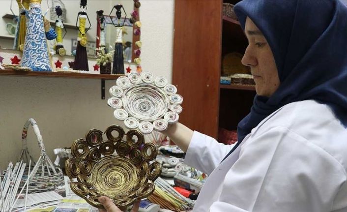 Akpınar Yaşam Merkezi gazete dokuma atölyesinde eski kağıtlardan harika işler yapan Zehra Meydan “ Akpınar Yaşam Merkezindeki işlerimizi evde yapmaya devam ediyoruz, hayat eve sığar. Daha güzel günler için evde kal Sındırgı, evde kal Türkiye” sözlerine yer verdi.