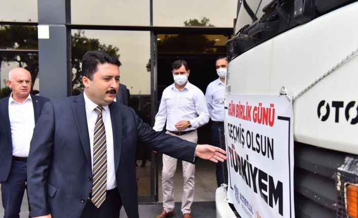 Konuşmaların ardından “Gün birlik günü geçmiş olsun Türkiyem” pankartlı yardım tırı dualarla uğurlandı.