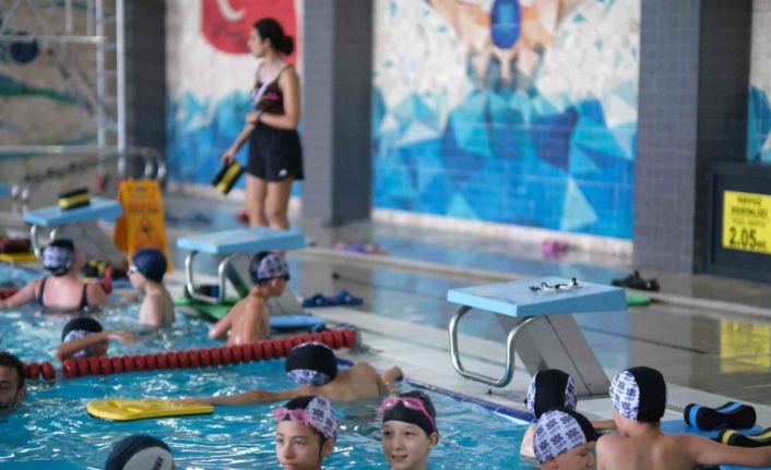 Altıeylül Belediyesi’ne bağlı Gazi Mustafa Kemal Atatürk Yaşam Kompleksi Yüzme Havuzunda haftanın 3 günü 630 çocuk yüzme öğreniyor.