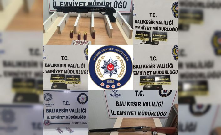 Balıkesir’de polis ekipleri tarafından aranan şahıslara yönelik yapılan denetimlerde çok sayıda uyuşturucu ve suç aleti ele geçirilirken, aranan 63 şahıs yakalandı.