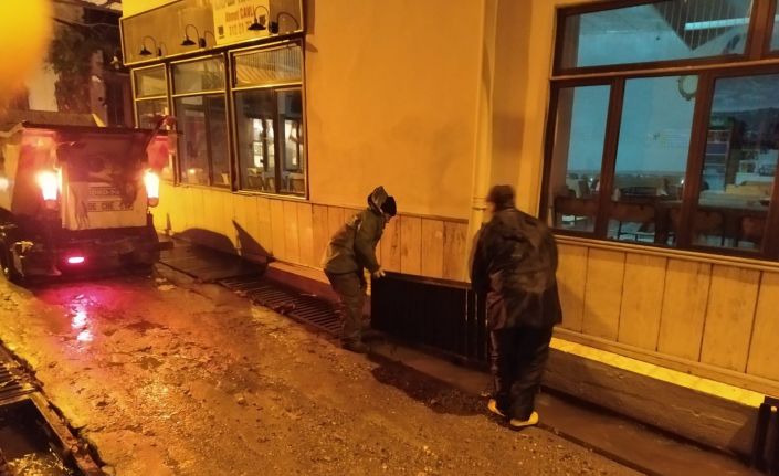 Gece yaşanan sağanak yağışla birlikte ekipler tüm bölgelerde çalışmalarını sürdürdü. Yollarda ve derelerde biriken toprak, ağaç, kütük, kaya parçalarını toplayan ve mazgal temizliği yapan ekipler geceki çalışmalarına sabah da aralıksız devam ediyor.