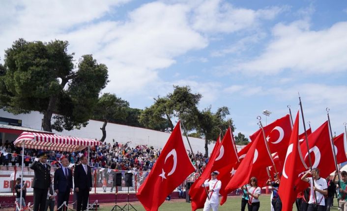 Stadyumu dolduran binlerce Ayvalıklının katılımıyla gerçekleşen tören; resmi geçit ile sona erdi.