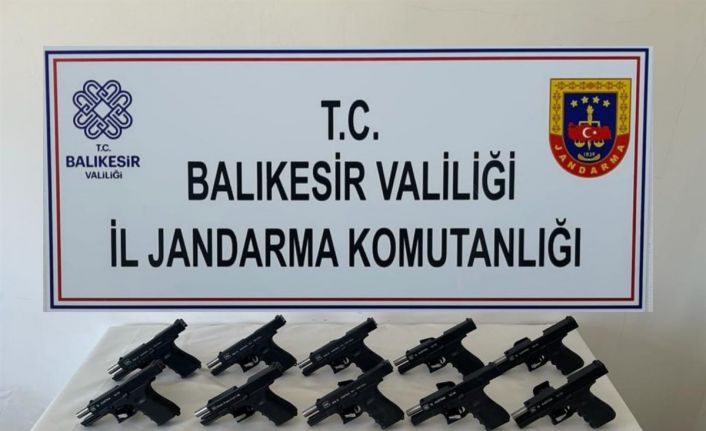 Balıkesir’in Ayvalık ilçesinde jandarma tarafından yapılan operasyonda 10 tabanca ve 8 adet sentetik uyuşturucu hap ele geçirildi.