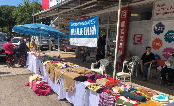 Kadınların sosyal yaşamın yanı sıra üretim sürecinde de daha fazla yer almalarını amaçlayan Ayvalık Belediyesi, bir yandan bünyesindeki mahalle evlerindeki kadınlara kurs vererek, bir yandan da burada üretilen el işi ürünlerin satışına destek olarak aile bütçelerine katkıda bulunuyor. Ürettikleri el emeği ürünleri satarak aile ekonomisine katkıda bulunan kadınlar da, emeklerini kazanca dönüştürmenin sevincini yaşıyor.