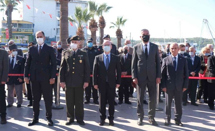 Ayvalık Kaymakamı Hasan Yaman, Cumhuriyet Başsavcısı Necati Kayaközü, Garnizon Komutanı Erhan Tutar, Ayvalık Belediye Başkan Vekili Serdar Tuç’un yanı sıra siyasi partilerin temsilcileri, gaziler ve Ayvalık’ın merkez ve kırsal mahallelerinin muhtarlarının hazır bulunduğu tören, çelenk sunumuyla başladı. Saygı duruşu ve akabinde bir ağızdan İstiklal Marşı’nın seslendirilmesiyle süren törende kısa bir süre önce yakalandığı Covit19 nedeniyle hayatını kaybeden Muhtarlar Derneği Başkanı ve 150 Evler Mahallesi Muhtarı Yener Koşvar da anıldı.
