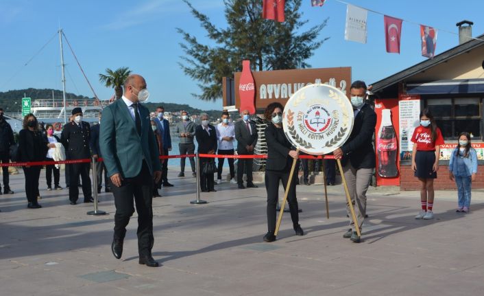 Ayvalık 15 Eylül Ortaokulu’nun koordinasyonunda gerçekleşen törende konuşan Ayvalık İlçe Milli Eğitim Müdürü Güner Bahadır, “Cumhuriyetimizin kuruluşunda ve milli egemenliğimizin tesis edilmesinde önemli bir görev üstlenen, Türkiye Büyük Millet Meclisi’nin kuruluşunun 101. yıldönümü ve 23 Nisan Ulusal Egemenlik ve Çocuk Bayramını kutlamanın büyük onur ve gururunu yaşıyoruz.” dedi.