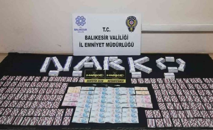 Yine başka bir operasyonda da yakalanan şahıslara uyuşturucu/uyarıcı madde sattığı tespit edilen şüpheli 2 şahsın ikametinde ve üzerlerinde yapılan aramada; 2 bin 254 adet sentetik ecza hap, 1,66 gram metamfetamin, uyuşturucu uyarıcı madde ticaretinden elde edildiği değerlendirilen 4 bin 600 TL para, 1 adet uyuşturucu madde kullanmaya yarayan cam aparat ele geçirildi. Yakalanan 2 şüpheli gözaltına alınarak haklarında uyuşturucu madde imal ve ticareti suçundan işlem başlatıldı.