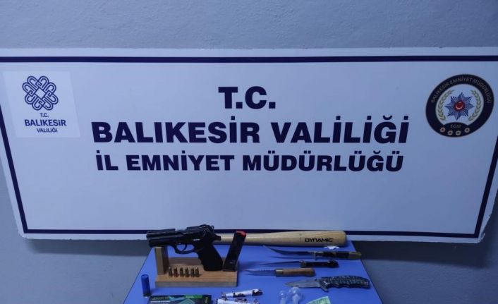 Balıkesir İl Emniyet Müdürlüğü Asayiş Şube Müdürlüğü ekipleri ile Jandarma ekiplerinin il genelinde ayrı ayrı yaptıkları operasyonlarda genel güvenliği ve asayişi sağlamak amacıyla Altıeylül, Karesi, Ayvalık, Bandırma, Burhaniye, Edremit, Erdek, Gönen ve Havran ilçelerinde yapılan çalışmalarda çeşitli suçlardan aranan 29 aranan şahıs gözaltına alınırken, adli makamlara sevk edilen 11 şahıs tutuklandı. Yapılan aramalarda: 3 adet ruhsatsız tabanca, 12 adet fişek, 783 adet sentetik uyuşturucu hap, 10 gram kubar esrar, 5 gram metamfetamin ve 3 adet uyuşturucu kullanma aparatı ele geçirildi.