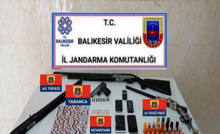Balıkesir İl Jandarma Komutanlığınca, uyuşturucu madde imal ve ticaretine yönelik yapılan istihbari çalışmalar neticesinde, Kepsut İlçesinde uyuşturucu madde ticareti yaptıkları tespit edilen 13 şüphelinin ikamet adreslerinde yapılan aramalarda; 220 adet sentetik hap, 5 gram metamfetamin, 1 adet tabanca, 3 adet av tüfeği, 53 adet fişek ve 7 adet cep telefonu ele geçirildi. Cumhuriyet Savcılığının talimatı ile ele geçirilen malzemelere el konularak, şüpheliler hakkında adli tahkikata başlanıldı.