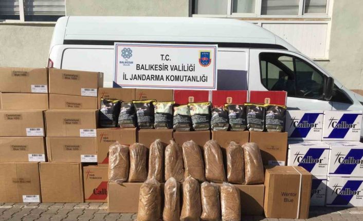 Balıkesir İl Jandarma Komutanlığınca, tütün mamulleri kaçakçılığına yönelik yapılan çalışmalar neticesinde; Dursunbey ilçesinde, şüpheli şahsın Bursa ilinden temin ettiği kaçak tütün ve tütün mamullerini kendisine ait araç ile ilçe merkezi ve çevre ilçelerde bulunan iş yerlerine satışını yapan 1 şahıs yapılan araştırmalar ve fiziki takip sonucu şahsın kullanmış olduğu araca yönelik operasyonel faaliyet sonucu; 230 kg kıyılmış kaçak tütün, 120 bin adet içi kaçak tütün ile doldurulmuş makaron, 100 bin adet boş makaron ve 1 adet suçta kullanılan araç ele geçirildi.
