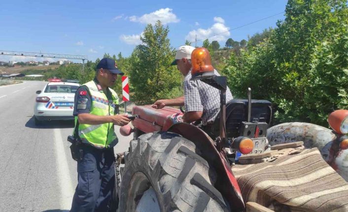 Balıkesir’de İl Jandarma Komutanlığı Trafik Timlerince anayol ve kırsal köy yollarında traktör sürücüleri ile araç sürücülerine denetim ve alkol testi yapıldı. Kurallara uymayan traktör sürücüleri ile araç sürücülerine idari para cezası uygulanırken, 7 araç trafikten men edildi.