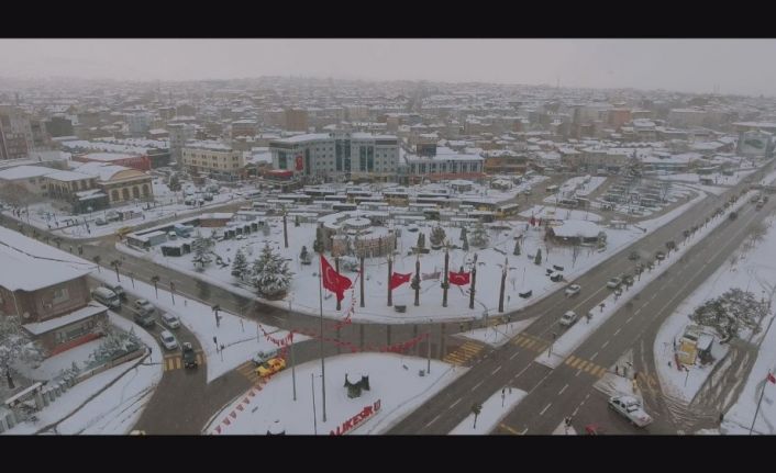 Balıkesir merkezdeki beyaz örtü ise havadan görüntülendi.