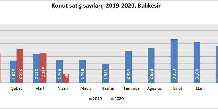 Türkiye İstatistik Kurumu (TÜİK) Balıkesir Bölge Müdürlüğünden açıklanan rakamlara göre Nisan ayında il genelinde 685 konut satışı gerçekleşti.