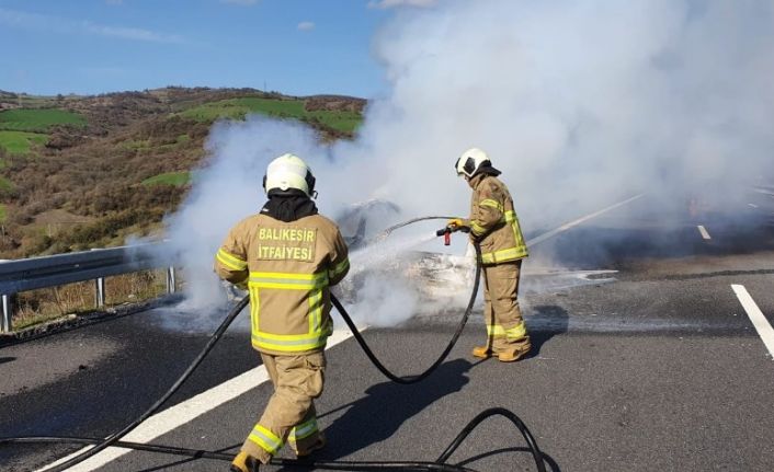 Balıkesir’in Susurluk ilçesinden geçen İstanbul-İzmir otobanında meydana gelen araç yangını itfaiye ekiplerince söndürüldü.