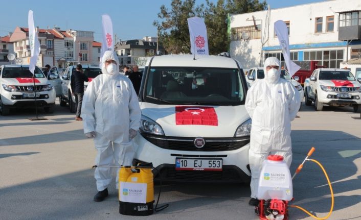 Balıkesir Büyükşehir Belediyesi ile ilçe belediyeleri arasında imzalanan iş birliği protokolüyle haşereyle mücadele kapsamında ilçe belediyelerine araç, pulverizatörlü ULV, mist blower, kanal sisleme cihazı dağıtımı düzenlenen törenle yapıldı.