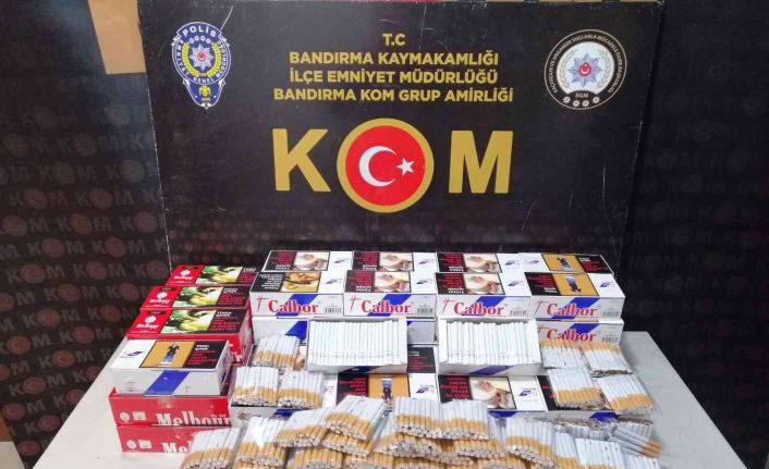 Balıkesir’in Bandırma İlçesinde Bandırma Kaçakçılık ve Organize Suçlarla Mücadele ekiplerince yapılan çalışmalar sonucunda 12 Bin 280 adet bandrosüz dolu makaron yakalandığı belirtildi.