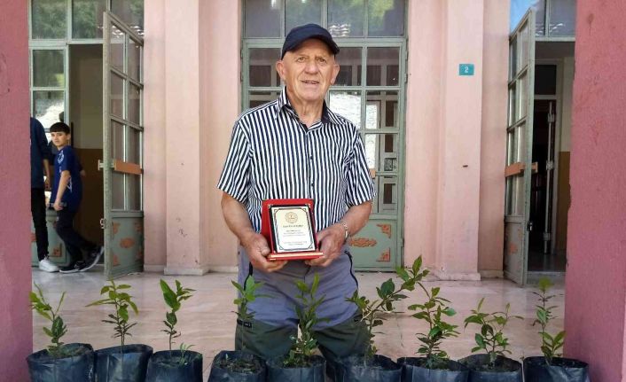 Bandırma’nın toprak dedesi olarak tanınan doğa aşığı Fettah Kara’ya okula gönüllü olarak diktiği 100 fidan dolayısıyla Müdür Yardımcısı Ersin Gezer tarafından plaket takdim edildi. Fettah Kara‘nın geçen yıl ve bu yılda olmak üzere okula 100 adet fidan diktiğinin bilgisini veren Gezer,“ Fettah Kara okulumuza güzel ağaçlar armağan etti. Okulumuz bu fidanlar sayesinde çok güzel olacak.” dedi. Gelecek sezon da ağaçlandırma yapmak için yer belirlediklerini söyleyen Gezer, “Fettah Kara’ya bu denli örnek ve duyarlı davranışı nedeniyle plaket vererek onurlandırmak istedik. Çok teşekkür ediyoruz” şeklinde konuştu.