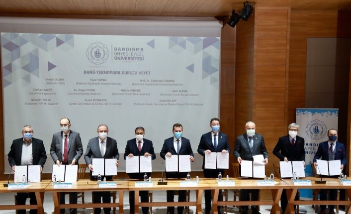 Daha sonra imza törenine geçildi. Balıkesir Valisi Hasan Şıldak, Balıkesir Büyükşehir Belediye Başkanı Yücel Yılmaz, Bandırma Onyedi Eylül Üniversitesi Rektörü Prof. Dr. Süleyman Özdemir, Bandırma Kaymakamı Günhan Yazar, Bandırma Belediye Başkanı Av. Tolga Tosun, Bandırma Ticaret Odası Başkanı Mehmet Kılkışlı, Bandırma Ticaret Borsası Başkanı Halit Sezgin, Gönen Deri İhtisas ve Karma OSB YK Başkanı Yusuf Çetinkaya, Marmara Yüksek Teknoloji ve Makine İhtisas OSB YK Başkanı Saadettin Çay’dan oluşan kurucu heyet, protokol metnine imza attı. Bandırma OSB adına Kurucu Heyette yer alan Hüseyin Yakar ise mazereti nedeniyle imza törenine katılamadı. Atılan imzalar ile BANÜ-TEKNOPARK’ın kuruluşunda ilk adım atılmış oldu.