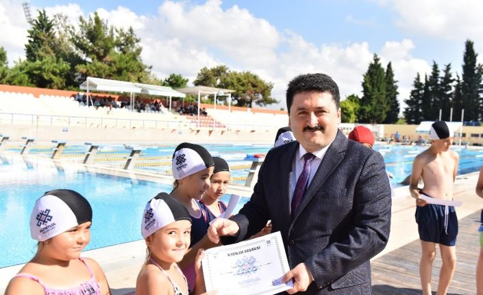 Okulların kapanmasıyla başlayan farklı aktiviteler ve kurslar sayesinde çocuklar hem eğleniyor hem eğitiliyor. Bu kapsamda Atatürk Yüzme Havuzu’nda devam eden yüzme kurslarında çocuklar deneyimli eğitmenleri ile yüzme öğreniyor. Altıeylül Belediyespor’da yüzme eğitimi alan 60 çocuğa sertifikalarını veren Altıeylül Belediye Başkanı Hasan Avcı konu ile ilgili olarak şunları söyledi; “Çocuklarımızın dolu dolu bir yaz geçirmeleri için gayret sarf ediyoruz. Bugün Altıeylül Belediyespor’da yüzme kursuna katılan 60 öğrencimize sertifikalarını verdik. Ayrıca yine burada 11 farklı spor kulübümüz 2 bini aşkın çocuğumuza yüzme kursu veriyor. Çocuklarımızın gözlerinde mutluluğu görmek bizleri mutlu ediyor” dedi.