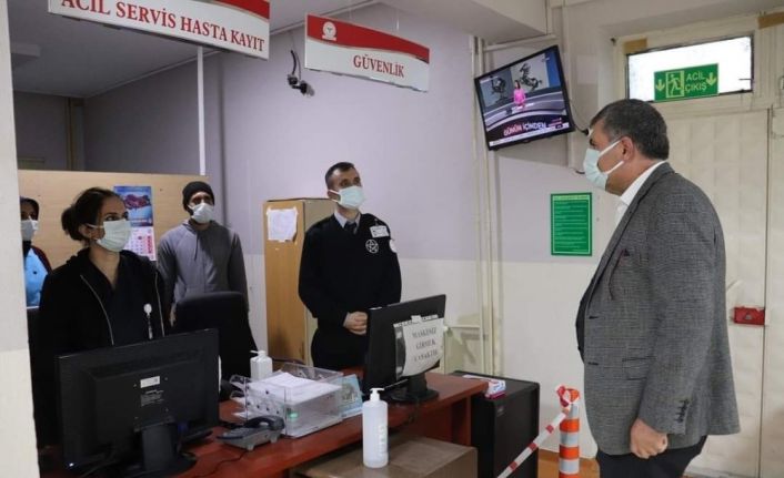 Kepsut Belediye Başkanı İsmail Cankul pandemi ile canla başla mücadele eden sağlıkçıları, polisi ve jandarmayı ziyaret ederek, baklava ikram etti.