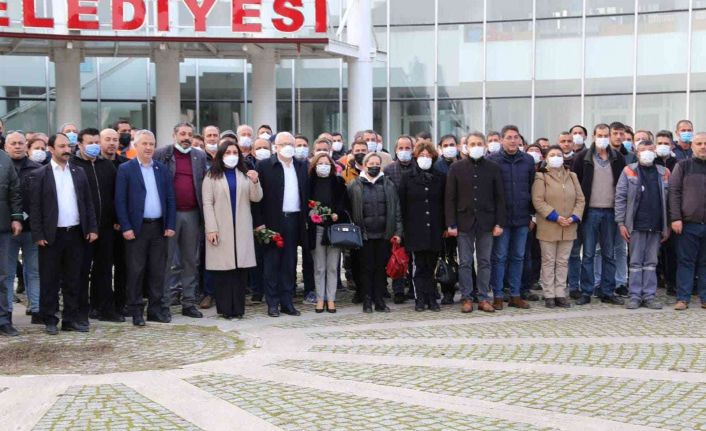 Burada çalışanlara seslenen Başkan Deveciler, "Ekibimizle birlikte çalışanlarımızın enflasyon baskısından daha az etkilenerek görevlerini daha mutlu şekilde yapabilmeleri için şartlarımızı da zorlayarak önemli bir artış sağlamış olduk. Emekleriyle çağdaş, mutlu Burhaniye’yi oluşturan tüm çalışanlarımıza hayırlı olsun” diye konuştu.