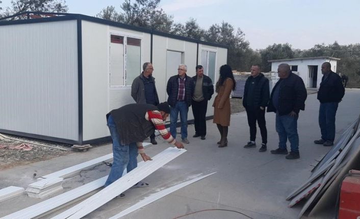Burhaniye’de afet bölgesine gönderilmek üzere yaşam konteynerleri hazırlanıyor.