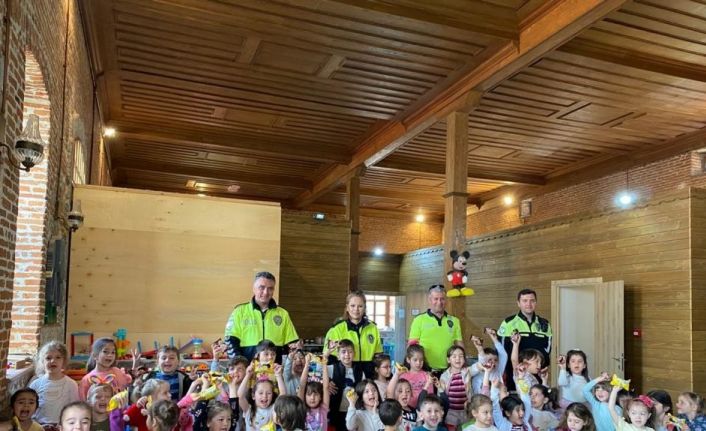 Burhaniye’ de minik öğrencilere temel trafik eğitimi