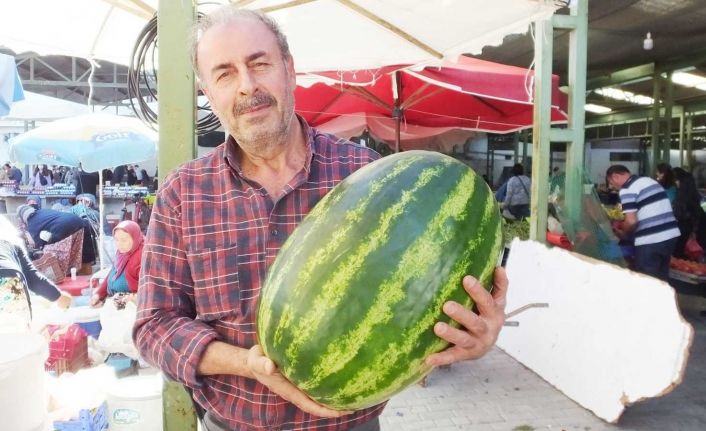 Balıkesir’in Burhaniye ilçesinde, Salih Özdal’ın sergilediği 25 kiloluk karpuz ilgi odağı oldu. Pazarda, pestil ve baharat satışı yapan Özdal, karpuzun İvrindi’nin Hacıahmetler Mahallesinde yetiştiğini söyledi.