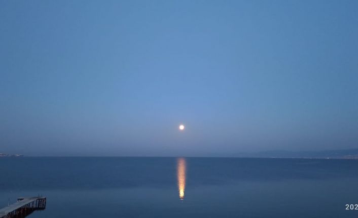 Burhaniye’nin turistik Ören sahilinde bu sabah ayın batışı ilginç görüntülere neden oldu. Ören Camisinde sabah namazından çıkan 46 yaşındaki Kaan Kaya, sahile indiğinde batmakta olan ayın denizdeki yansıması ile karşılaştı. Bu arada olaya şahit olan başka vatandaşlarda cep telefonları ile fotoğraflar çekti. İstanbul’dan geldiğini anlatan Kaan Tuna, “Her sabah namazdan sonra sahili geziyorum. Bu sabah da sahilde gezerken ayın batmakta olduğunu ve denizdeki yansımasını gördüm. Herkes gibi bende fotoğraf çektim. Sosyal medyada paylaştığım fotoğraf ilgi gördü. İstanbul’da böyle manzaralar yakalayamıyoruz. Ören’in manzarası çok güzel. Sakin bir ortamda sahilde gezmek çok güzel. Burada olmak pandemi döneminde çok iyi geldi” dedi.Burhaniye’de ayın batımı böyle görüntülendi