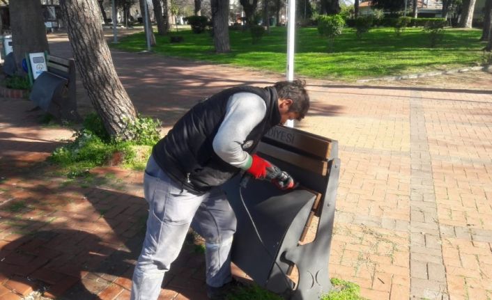 Ekipler parklardaki bankları kaldırıp depoya koydu. Pandemi riskinin ortadan kalmasıyla bankların yerine konulacağı öğrenildi.