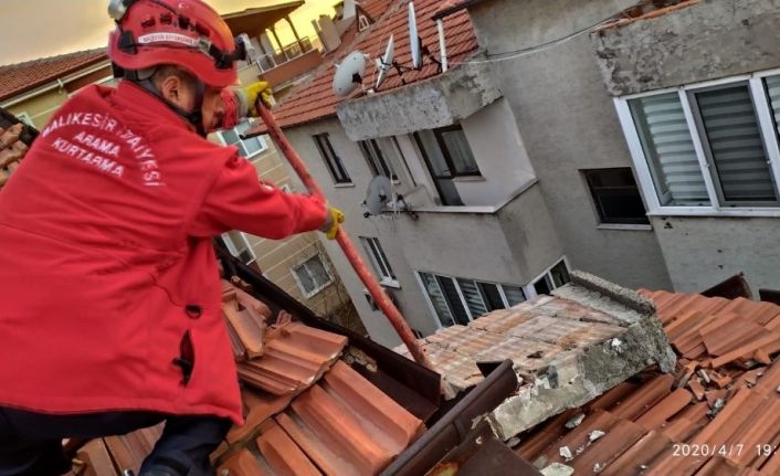 Burhaniye ilçesinde, iki günden beri devam eden fırtına bir evin çatısına zarar verdi. Zarar gören çatı, itfaiye ekipleri tarafından kontrollü bir şekilde yıkıldı.