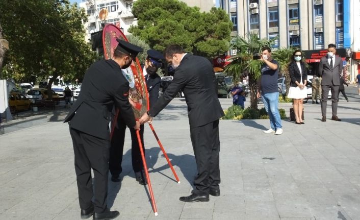 Burhaniye ilçesinde, 19 Eylül Gaziler Günü koronavirüs (Covid-19) tedbirleri kapsamında düzenlenen çelenk sunma töreni ile kutlandı.