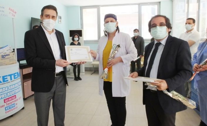 Burhaniye’de Kaymakam Memiş hemşirelere teşekkür belgesi ve gül verdi