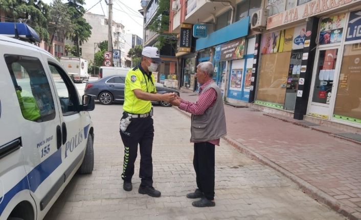 Burhaniye’de polis maske dağıttı