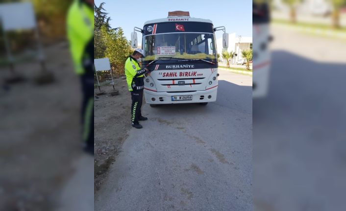 Burhaniye ilçesinde, Emniyet Müdürlüğü Trafik Denetleme Büro Amirliği ekipleri toplu taşıma araçlarını denetledi. Yapılan denetlemeler sırasında ayakta yolcu taşıyan 5 minibüse ceza kesildi.