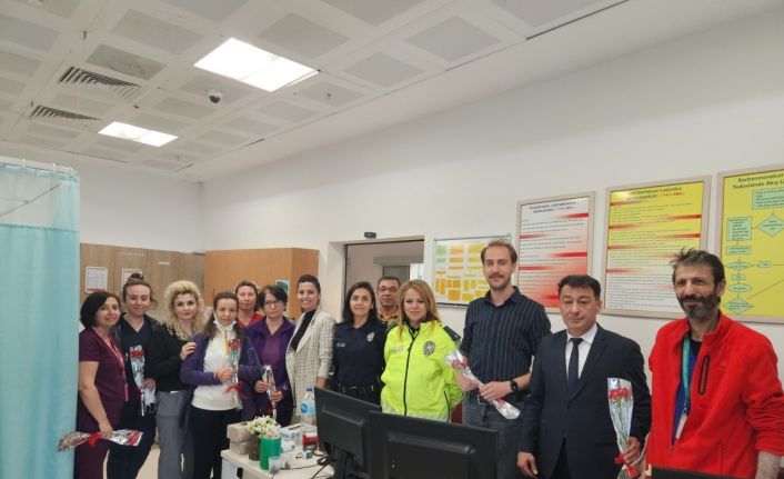 Balıkesir’in Burhaniye ilçesinde14 Mart Tıp Bayramı, çeşitli etkinliklerle kutlanırken, Burhaniye Emniyet Müdürlüğü personeli de sağlık görevlilerini yalnız bırakmadı. İlçe Emniyet Müdürü Metin Kartal’ın başkanlığındaki 6 kişilik heyet önce Devlet Hastanesi Başhekimi Dr. Evren Akgöl’ü ziyaret ederken, görevlilere çiçek takdim etti.