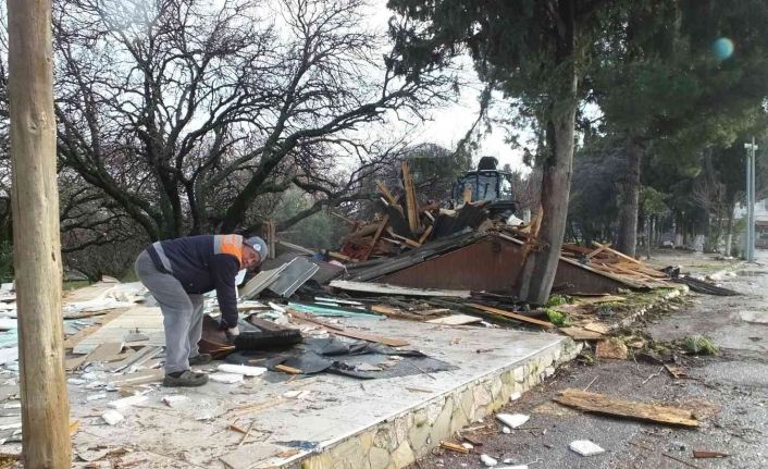 Burhaniye’de Belediye geçtiğimiz yıl Ören ve İskele sahilinde yeni düzenlemeler yaparken, çok sayıda yeni işyeri yaptı. Esnaflar, yeni işyerlerine taşınırken, eskileri de yıkılmaya başlandı. Ören Mahallesi İsmail Kızıklı Caddesinde boşaltılan eski dükkanların yıkımına da başlandı. Çalışmaları yakından takip eden Ören Mahalle Muhtarı İlker Kurt, Başkan Ali Kemal Deveciler ve emeği geçenlere teşekkür etti. Esnafların yeni dükkânlara taşındıklarını anlatan Muhtar Kurt, yıkılan işyerlerinin yerine yeşil alan düzenlemesi yapılacağını anlatırken, Ören’in eşsiz bir tatil yeri olduğunu söyledi.