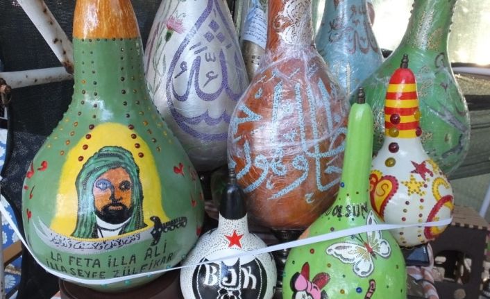 Burhaniye ilçesinde, memur emeklisi Mahmut Ertan’ın hat sanatı ile süslediği su kabakları yoğun ilgi gördü. Su kabaklarının tanesini 750 ile bin 500 lira arasında sattığını anlatan Ertan, hattatlık eğitimi aldığını ve su kabağı işleme kursuna katıldığını söyledi.