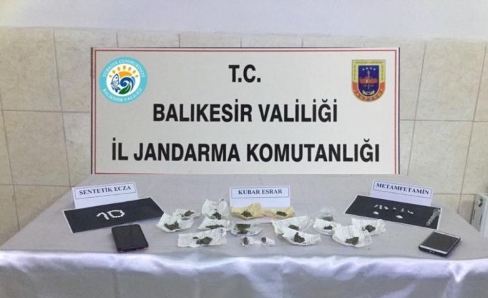 Bir ihbarı değerlendiren Balıkesir İl Jandarma Komutanlığı KOM Şube Müdürlüğü ve Burhaniye Jandarma Komutanlığı ekipleri F.K. ve T.G. adlı şahısları yakaladı. F.K. adlı şahsın üzerinde uyuşturucu veya uyarıcı olduğu ihbarını alan jandarma, F.K.ile T.G. adlı kişileri takibe aldı. E-87 kara yolu üzerinde 10 T 5635 plakalı ticari taksiye bindikleri tespit edilen şahıslar takibe alındı. Takipteki araç içinde bulunan zanlılar seyir halındayken malzemeleri yola attıkları belirlendi. Söz konusu araç durdurulurken yola atılan 100 gram kubar esrar ile 10 gram metamfetamin ile T.G. adlı şahsın üzerinde bulunan 30 adet sentetik hap muhafaza altına alındı. Şüpheliler gözaltına alınırken, tahkikata başlandı.