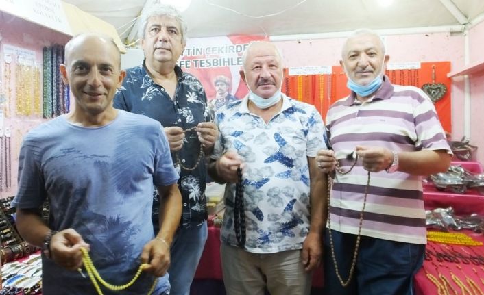 Burhaniye’de zeytin çekirdeği tespihler ilgi gördü